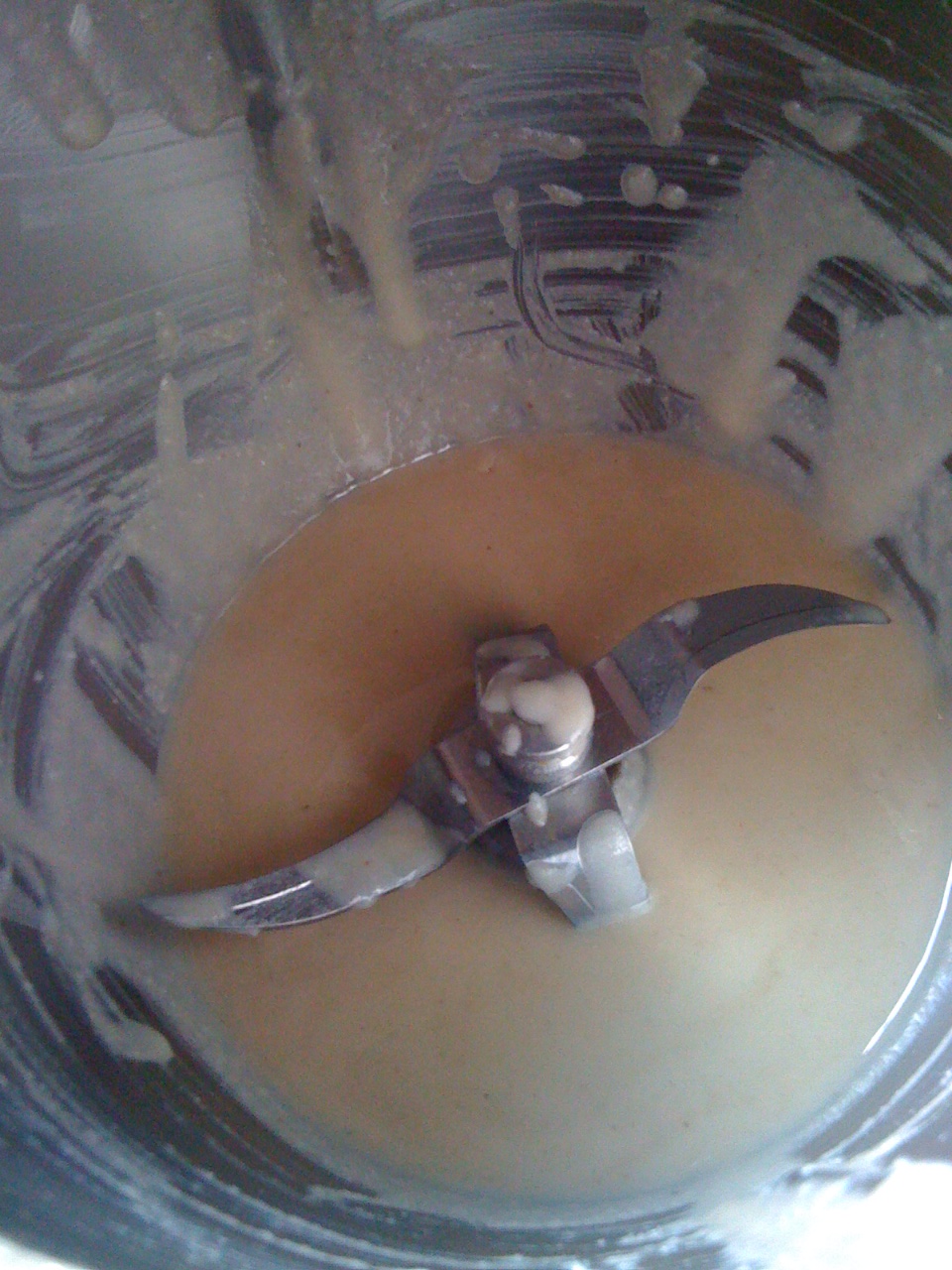 Whizz up on speed 8 / 37deg / 3 minutes, scraping down the sides of the bowl once every minute: