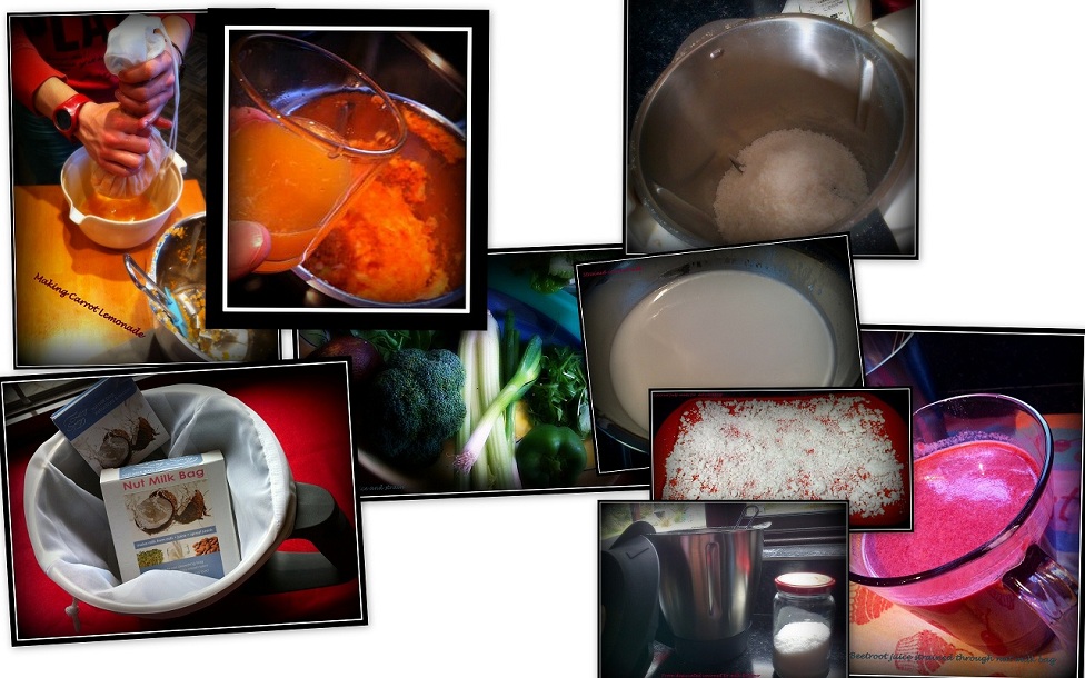 You can also use your nut milk bag to make juice from fresh ingredients, by blending and then straining the juice through the bag, then by using the pulp in other ways, eg in cakes, crackers, muffins, raw fudge etc. You can even make flour from coconut milk pulp!
