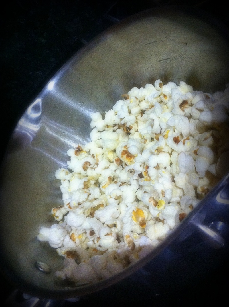 Next time, I think I’ll add some chopped roasted nuts and/or seeds to scatter underneath the popcorn for an extra crunch factor.